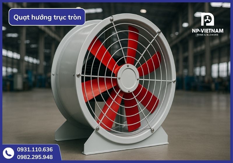 Quạt hướng trục tròn có hình dạng trụ tròn, cánh quạt gắn trực tiếp vào mô-tơ, tạo luồng gió thẳng mạnh mẽ. Thiết bị này phù hợp cho các đường ống dẫn khí, hệ thống điều hòa trung tâm hoặc tầng hầm.