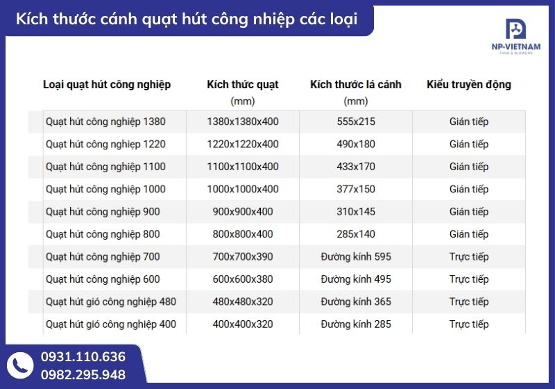 NP Việt Nam là đơn vị phân phối uy tín, cung cấp đa dạng cánh quạt inox quạt hút công nghiệp với đầy đủ kích thước và kiểu truyền động. Khi mua, người dùng nên: