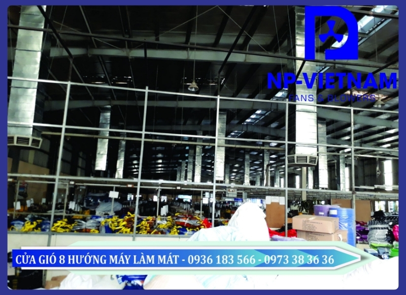 Hình ảnh: Ứng dụng cửa gió 8 hướng thổi trong xưởng may mặc