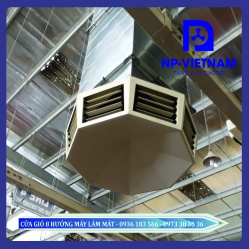 Hình ảnh cửa gió lá sách 8 hướng lắp đặt trong hệ thống máy làm mát không khí từ trên mái xuống