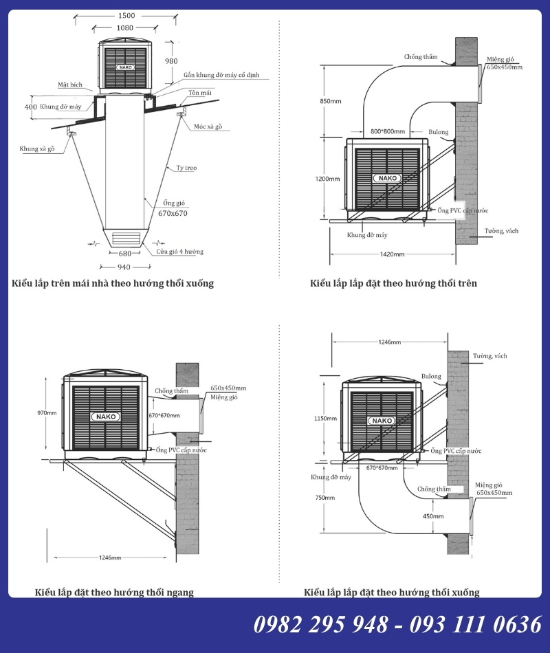 4. Phương pháp lắp đặt máy làm mát công nghiệp air cooler 25000 m3/h thổi ngang