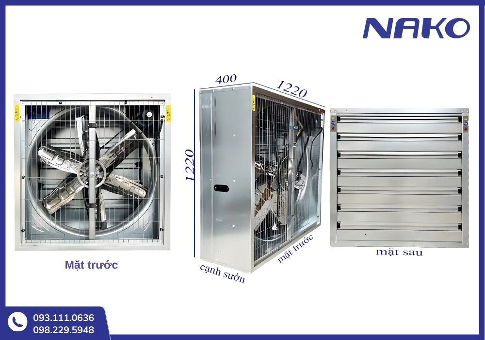 Quạt hút công nghiệp Nako 1220x1220 vỏ inox vuông