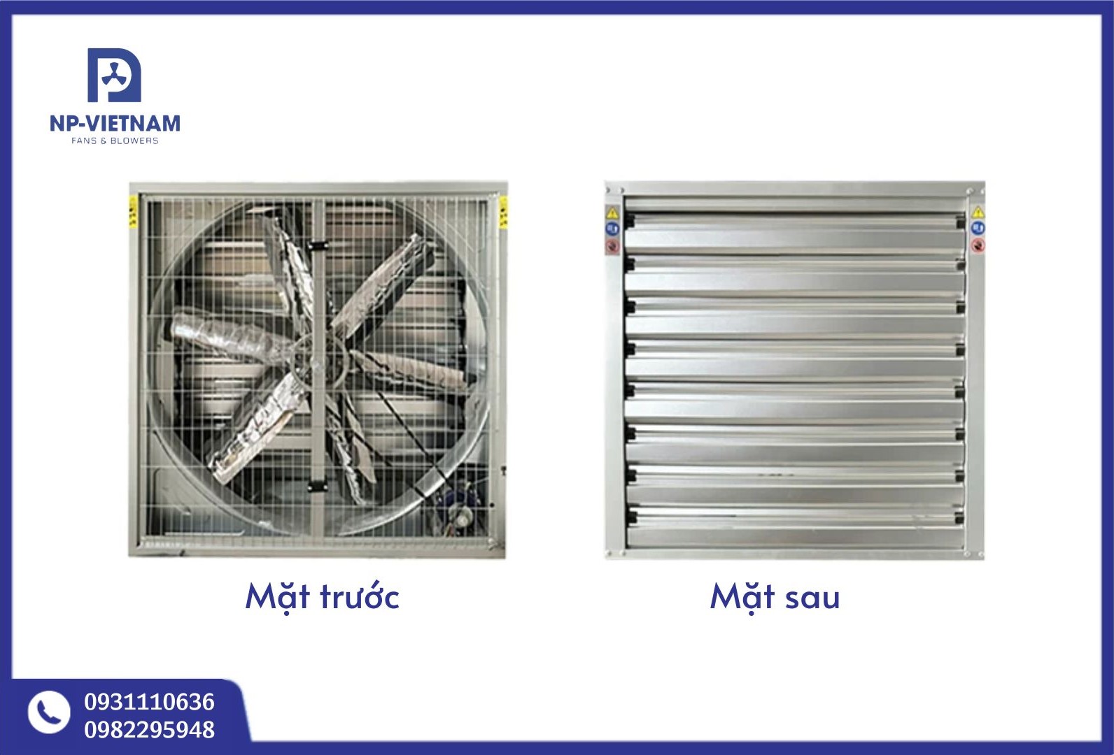 Quạt hút công nghiệp 1100x1100x400 mặt trước, mặt sau