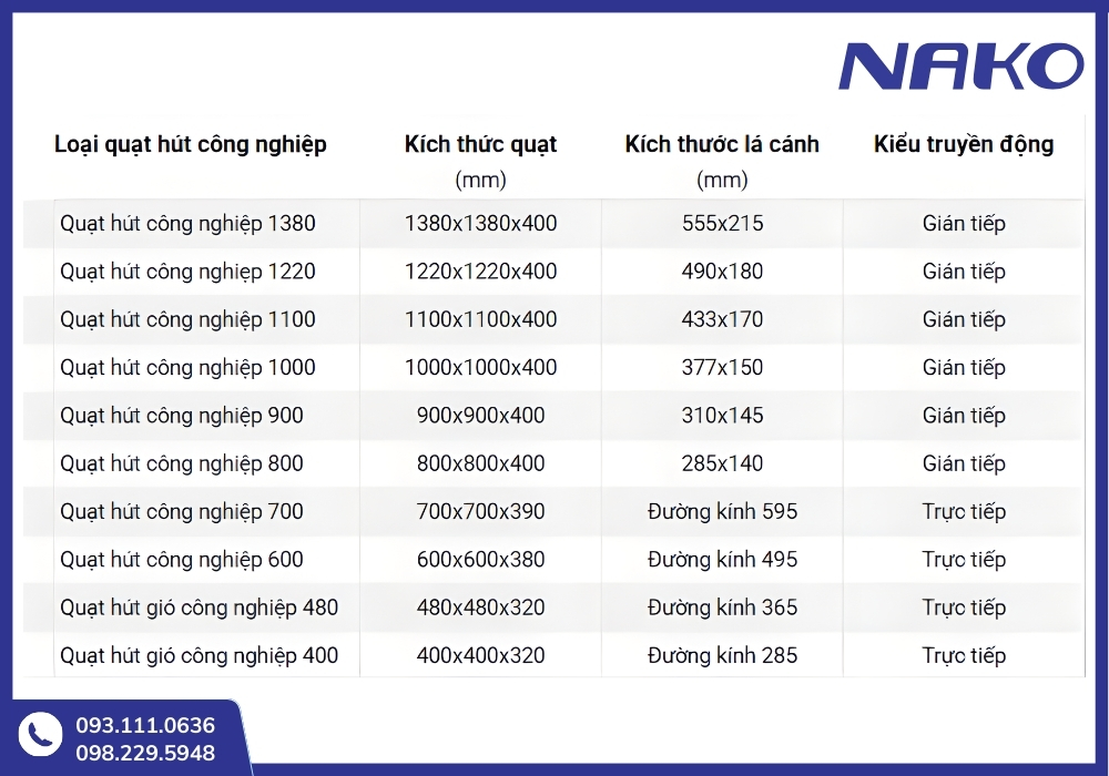 Hình ảnh: Thông số chi tiết quạt hút công nghiệp NAKO