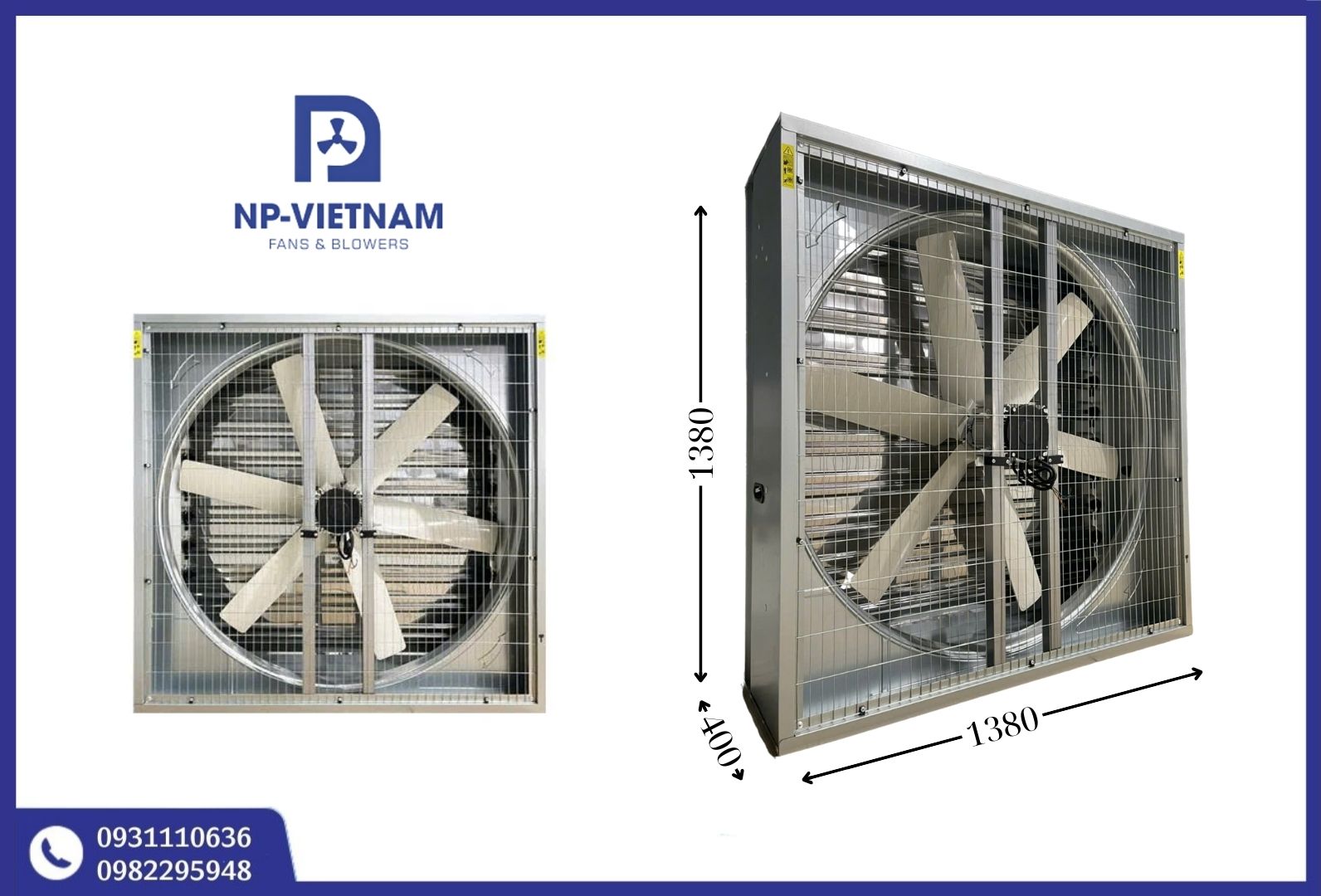 Quạt thông gió vuông trực tiếp 1380x1380 (quạt thông gió vuông trực tiếp cánh composite 1380): phù hợp nhà xưởng, trang trại lớn → giá cao hơn nhưng hiệu suất tốt hơn.