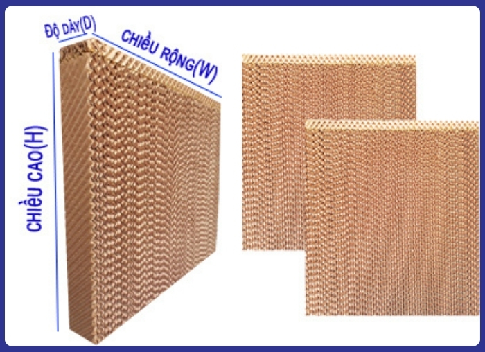 Với cấu trúc dạng tổ ong quạt nước, lớp sóng và mối liên kết giữa các lớp sẽ giúp tăng diện tích tiếp xúc giữa không khí và bề mặt giấy ướt, tối ưu hóa quá trình bay hơi và trao đổi nhiệt.