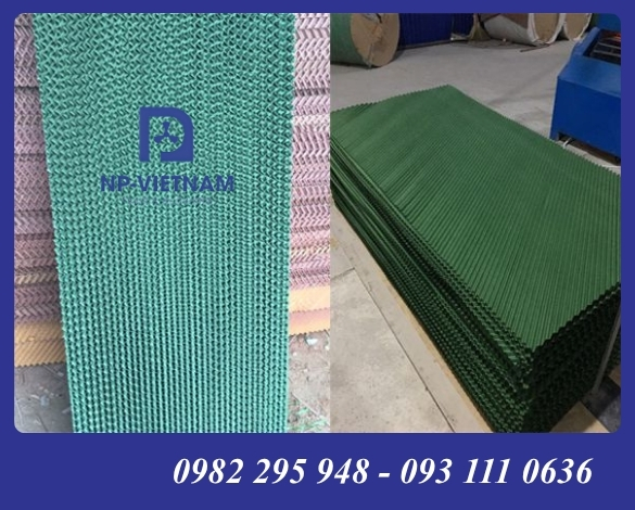 Tấm Cooling Pad xanh được sử dụng rộng rãi vào việc thông gió làm mát không khí chứng tỏ là một trong những biện pháp mang lại hiệu quả cao và kinh tế nhất. Với cơ chế tự làm sạch và khả năng thẩm thấu của loại giấy craff đặc biệt này đảm bảo cho tấm giấy không bị mục nát trong môi trường nước, độ bền của giấy tương đối cao.